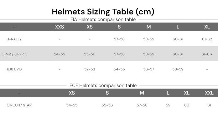 Full face kartinghjelm i komposittmateriale. Lett skall, høy ventilasjon takket være fire luftinntak på haken og åtte ventiler på toppen. Øyeport i standardstørrelse, myke indre komfortable stoffer som gir best passform; dobbel ring lukking.